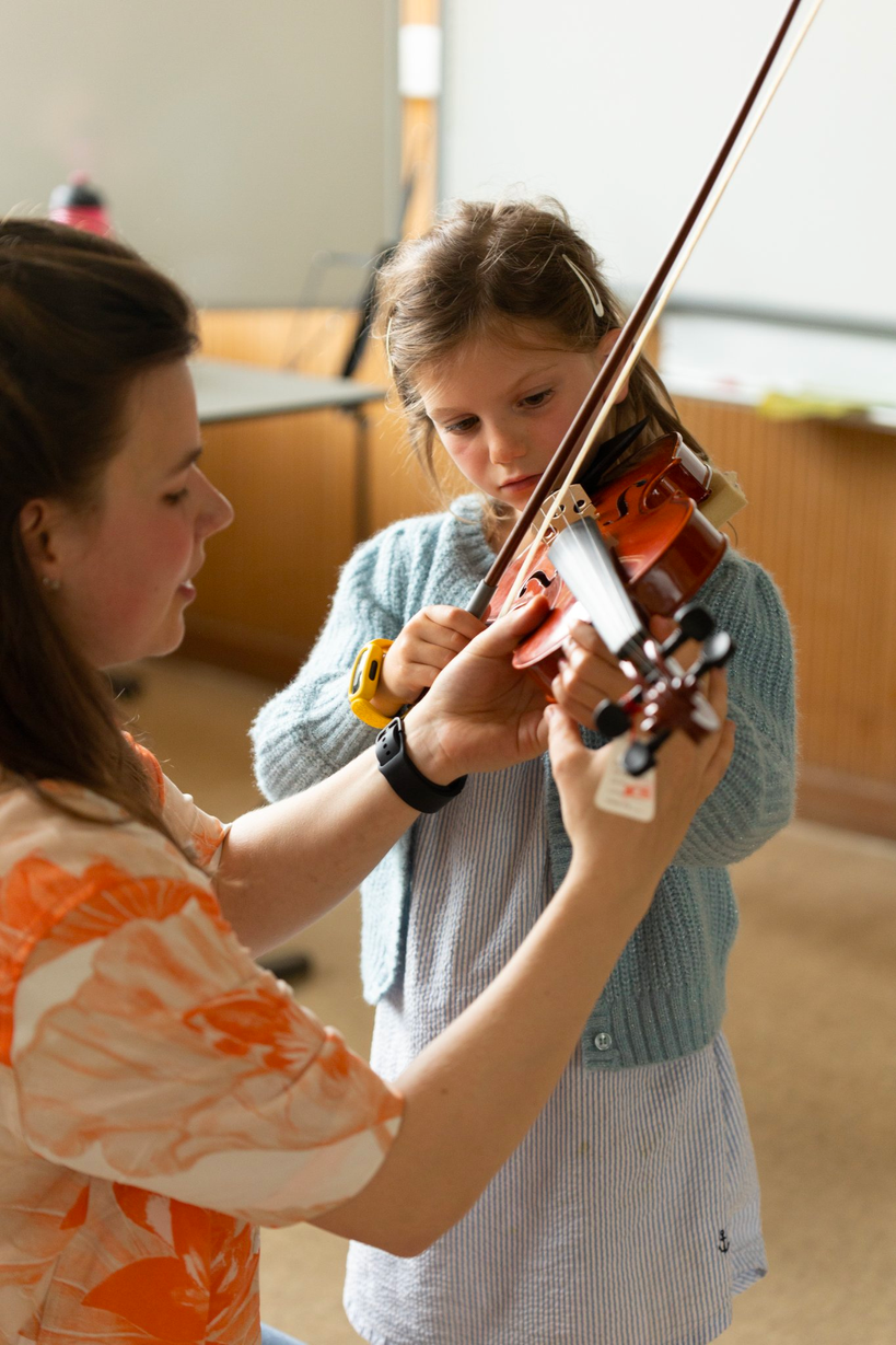 Bij onze vioollessen staan we voor persoonlijke aandacht en begeleiding. Elke leerling krijgt privélessen, zodat ze in een vertrouwde en ondersteunende omgeving kunnen leren. Onze ervaren viooldocente werkt samen met elke leerling om een traject op maat te creëren dat is afgestemd op hun individuele behoeften, vaardigheden en leerstijl.